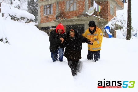Rize’de etkili olan kar yağışı bir çok köy yolunu ulaşıma kapatırken, hastaların köylerde mahsur kalmasına neden oldu.
