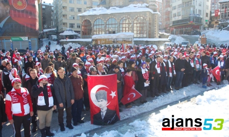 Yüzlerce kişinin Türk bayrağı, Kaşkol ve şapkalı katıldığı törende 1 dakikalık saygı duruşunun ardından İstiklal marşı okundu, ardından günün anlamı ile ilgili konuşma yapan Rize Gençlik Spor İl Müdürü Mustafa Çelik ülkesi için vefalı gençler oldukça bu ülke asla yıkılmaz dedi.