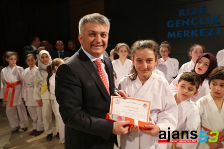 Rize Gençlik Merkezi'nde gerçekleştirilen sertifika dağıtım törenine Vali Ersin Yazıcı'nın yanı sıra Vali Yardımcıları Mehmet Kurt, Emre Nebioğlu, İl Milli Eğitim Müdürü Şemsettin Durmuş, Gençlik Hizmetleri ve Spor İl Müdürü Mustafa Çelik, Okul Müdürleri, Öğretmenler, Veliler ile Merkez Atatürk ve İstiklal İlk/Ortaokulu Öğrencileri katıldı.