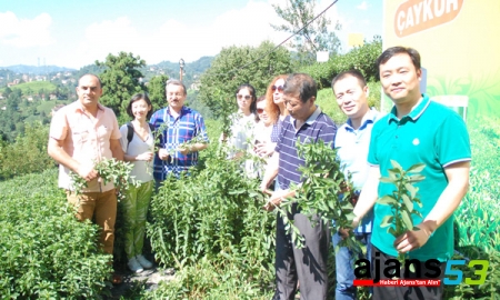 ÇAYKUR Genel Müdürü İmdat Sütlüoğlu, Çin'den gelen bir heyetle birlikte, Çay ve Bahçe Kültürleri Araştırma Enstitüsü bahçesinde, Arjantin'den getirilen fidelerle deneme amacıyla yetiştirilen ürünü hasat etti.