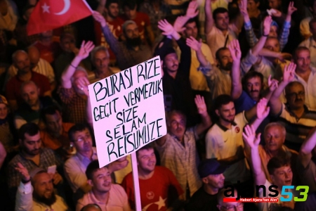 Bazı vatandaşların elinde "İdam istiyoruz", "Burası Rize, geçit vermezuk size", "Selam reisumuze" yazılı dövizler açarak tekbir getirdi.