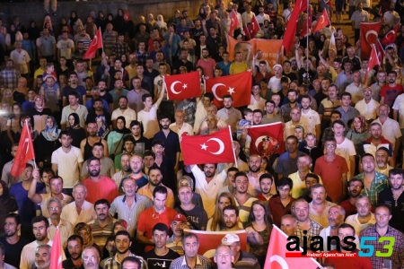 Rize Cumhuriyet Meydanı'nda demokrasiye ve milli iradeye sahip çıkmak için toplanan yaklaşık 3 bin kişi darbe girişimine tepki gösterdi.