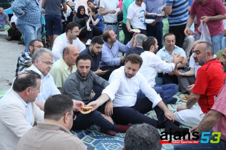 Sabahın ilk ışıkları ile kurulan sofrada bir araya gelen AK Parti Rize Milletvekili Osman Aşkın Bak, Rize Belediye Başkanı Reşat Kasap, AK Parti Rize İl Başkanı Muhammed Avcı, meydanda bulunan vatandaşlarla birlikte Rize simiti, kaşar peyniri ve çay ile kahvaltı yaptı.