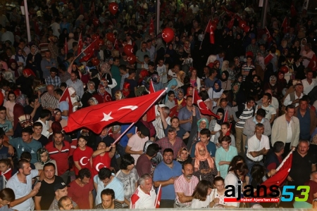 15 Temmuz’da darbe teşebbüsüne bulunan hainlere karşı tek yürek olan Rizeliler 7’den 70’e büyük küçük demeden Cumhurbaşkanı Recep Tayyip Erdoğan’ın çağrısına kulak vererek Milli İrade Demokrasi nöbetlerini kararlılıkla tutuyorlar. Darbeye teşebbüsün üzerinden 8 gün geçmesine rağmen il protokolü ile birlikte sabahlara kadar yağan yağmurlara bile aldırış etmeden Rize Cumhuriyet Meydanını dolduran binlerce vatandaş sabır içerisinde vatanına milletine sahip çıkıyor.