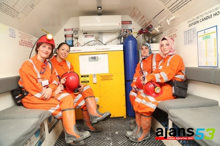 Çayeli Bakır İşletmeleri’ne gelen madenci eşleri, yerin yaklaşık 600 metre altında çalışan madenci kocalarına sürpriz bir ziyarette bulundu.