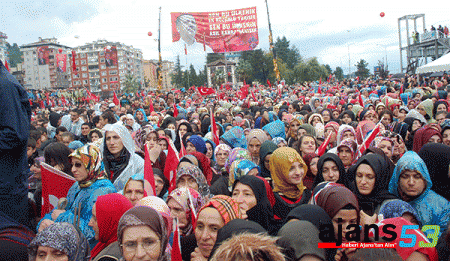 “Türkiye’nin karşısına terör örgütlerini dikenler neyin peşinde? Terör örgütlerini bize tercih edenlerin derdi ne Tayyip Erdoğan’dır ne bu hükümet dertleri. Dertleri Türkiye’nin kendisi Türk miletinin kendisidir. Bunların derdi Türkiye’nin artık milli politikaların uygulamadaki kararlılığıdır, her gün artan özgüvenidir. Suriye, ırak, Mısır’ın Libya’nın durumu ortada. Böyle bir ortamda Türkiye’yi rahat bırakırlar mı ? Biz herkesin küreselleşmeden söz ettiği dönemde niçin sürekli olarak bu kardeşiniz yerli ve milli vurgusu yapıyor. Biz kendimize yeteceğiz, başka çaresi yok bunun. Önümüze çıkan sorunları ancak bu şekilde aşabileceğiz. Atalarımız ne derdi ‘Zor oyunu bozar.’ Türkiye üzerinde kurulan bir oyun var ve biz bu oyunu bozmakta kararlıyız. Son 3 yılda ülkemize yönelik tüm kritik hamleleri boşa çıkarttık. Önemli mesafeler kat ettik. Bana göre, 15 Temmuz bu işin altın vuruşu olacaktı. Hamdolsun, onu da akamete uğrattık. Hemen arkasından başlattığımız Cerablus Operasyonu ile uzun zamandır yapmak istediğimiz sürekli engellendiğimiz karşı hamleleri de başlattık. PKK’ya tarihinin en büyük darbeleri vuruluyor. Örgütün çeyrek yüzyıldır girilmemiş inlerine giriyoruz. Yuvalandıkları delikler birer birer imha ediliyor. Aynı şekilde DAEŞ’in ülkemizdeki organizasyonu büyük ölçüde çökertilmiş durumda. Diğer terör örgütlerine yönelik operasyonlarda da çok önemli neticeler elde ediliyor. Musul meselesinde gerek Irak’tan gerekse diğer yerlerden bu kadar yüksek ses çıkmasının sebebi bizim orada kurulmak istenen mezhep oyunun biz görüyoruz ve deşifre ediyoruz. DAEŞ balonun söndüren Türkiye’dir. Türkiye’nin bölgedeki askeri varlığı yeni değildir, meçhul de değildir, dert başkadır. Biz bu oyunu görüyoruz ve rıza göstermiyoruz. Türkiye için varlık yokluk haline dönüşen bu konuda elimizdeki imkanları sonuna kadar kullanarak kendimizin de bölgedeki kardeşlerimizin de çıkarlarını korumakta kararlıyız” diye konuştu.