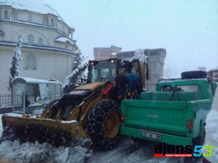 Rize Belediyesi Karla mücadele ekipleri 12 Adet İş Makinesi 40 kişilik ekip ile çalışmalarına gece gündüz kontrollü bir şekilde, üst mahallelerde vatandaşın sorunlarını gidermeye devam ediyor.