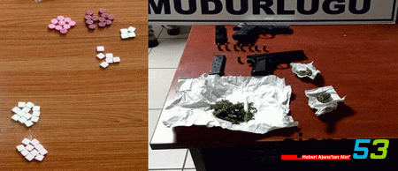 Pazar ilçesi İkiztepe Mahallesinde uyuşturucu madde ticareti yapıldığı yönünde gelen bir ihbar sonucu ekipler Mahallede yaptıkları beklemede 42 plakalı bir araçtan inen şahsın 53 plakalı bir araca doğru giderek elinde bulunan kağıda sarılı bir maddenin verildiğini görmesi üzerine yapılan kontrolde iki adet ruhsatsız tabanca ve bun tabancalara ait 8 adet mermi ile 11 gram esrar maddesi ele geçirildi. Şahıslar H.A, G.K,Y.Ş, Y.E.K, O.K ve Özbekistan vatandaşı olan D.M gözaltına alındı. O.K nin ise Rusya pasaportuna sahip olduğu tespit edildi.