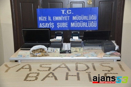 7258 Sayılı Futbol ve Diğer Müsabakalarında Bahis ve Şans Oyunları Düzenlemesi Hakkında Kanuna Muhalefet Kapsamında Rize İl Emniyet Müdürlüğü Asayiş Şube Müdürlüğü'ne bağlı Ahlak Büro Amirliği ekipleri, yaptıkları çalışmalarda yasa dışı bahis oynatıldığı ileri sürülen iş yerlerine baskın düzenledi. Yapılan baskınlarda yasa dışı bahis oynattığı ileri sürülen 13 kişi gözaltına alındı.