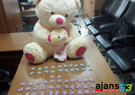 Trabzon Emniyet Müdürlüğü’ne bağlı Narkotik Şube Müdürlüğü ekipleri İstanbul’dan Trabzon’a gönderilen kargo paketinde yaptıkları aramada oyuncak ayıcık içine gizlenmiş 990 adet ecstasy hapı ele geçirdi. Olayla ilgili bir şüpheli gözaltına alındı.