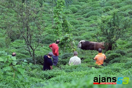 Merkeze bağlı Selimiye köyünde kesileceği sırada kaçan kurbanlık boğa gözü bağlı halde çay tarlasına girerek kendisini yakalamaya çalışanları kovaladı. Rize Belediyesi veteriner ekiplerinin uyuşturucu iğne ile sakinleştirmeye çalıştığı, boğa ip ile yakalamaya çalışan kasaba saldırdı. 3 uyuşturucu iğne atılan boğa, 2 saat sonra sakinleşince yakalanabildi.
