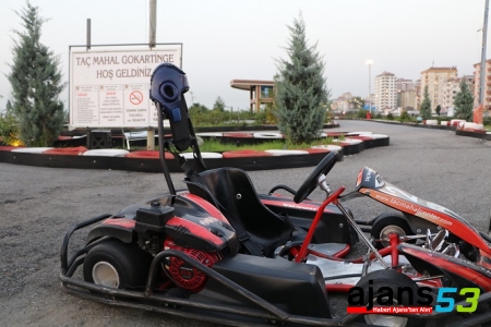 Go-kart pistinde şalı aracın lastiğine dolandı