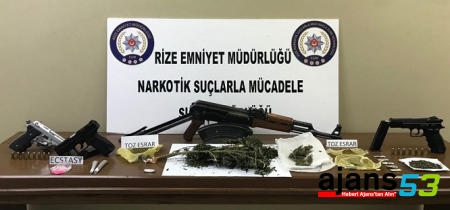 Rize İl Emniyet Müdürlüğü'ne bağlı ekiplerin il merkezinde 7 ayrı noktada yaptığı uygulamada bir kaleşnikof tüfek yakalandı.