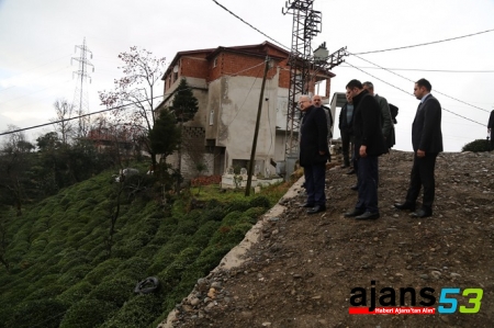 Rize Belediye Başkanı Prof. Dr. Reşat Kasap, çalışmaların son durumunu mahalle muhtarı Alparslan Kuru ile birlikte inceledi.