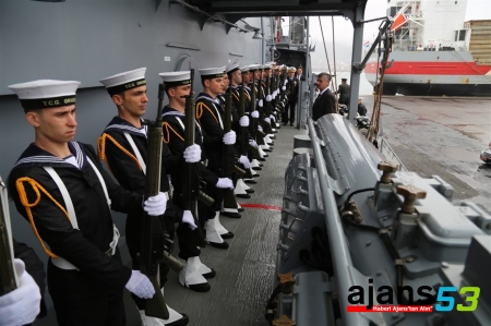 Rize Valisi Erdoğan Bektaş, daha sonra savaş gemisine iadeyi ziyarete bulundu. Gerçekleştirilen bu ziyarete, Filo Komutanı Tümamiral Tayyar Erdem, Vali Bektaş’ı askeri törenle karşıladı.