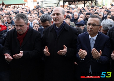 Saadet Minder (85) için Güneysu ilçesindeki Merkez Camisi'nde düzenlenen törene, oğlu Ahmet Minder ve diğer yakınlarının yanı sıra İçişleri Bakanı Soylu, Rize Valisi Kemal Çeber, Artvin Valisi Yılmaz Doruk, Gençlik ve Spor Bakan Yardımcısı İhsan Selim Baydaş ile vatandaşlar katıldı.