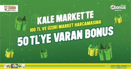 Kale Market ve Tahtakale'de 15 Mart - 15 Nisan 2019 tarihleri arasında tek seferde farklı günlerde yapılan her 100 TL ve üzeri market harcamana 10 TL bonus, toplam 50 TL bonus. Kampanyaya Garanti Bonus’lar, Flexi, Paracard dahildir. Aynı günde yapılan 100 TL ve üzeri harcamaların ilki kampanya dahilindedir. Kampanyaya katılmak için ilk harcamadan önce BonusFlaş uygulamasından “Hemen Katıl” buton tıklanmalı veya KALE yazıp; Garanti Bonus sahipleri 3340'a, TEB Bonus sahipleri 4616’ya, şeker Bonus sahipleri