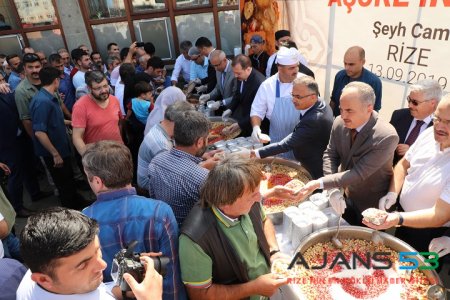 Gönderilen özel tarife göre pişirilen ve kazanlarla getirilen aşureler, cuma namazının ardından Rize Valisi Kemal Çeber, Cumhurbaşkanlığı İdari İşler Başkanlığı Güvenlik İşleri Genel Müdürü Yusuf Karaloğlu, Rize Belediye Başkanı Rahmi Metin ve diğer ilgililer tarafından vatandaşlara dağıtıldı.