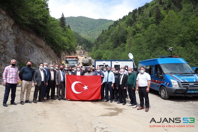 Rize İnşaat Mühendisleri Odası Başkanı Murat Yazıcı, Çay Üreticileri Dayanışma Derneği (ÇAYÜDAD) Başkanı Mustafa Mavi, İkizdere Ziraat Odası temsilcisinin yanı sıra taş ocağına destek veren 158 muhtar adına İkizdere Muhtarlar Derneği ile Rize merkez Muhtarlar Derneğinden 18 kişi, ocağın yapılacağı alana geldi.