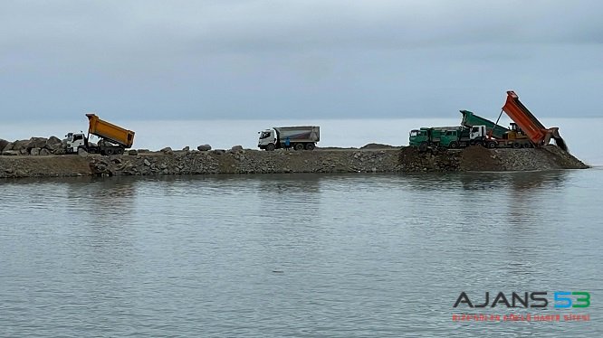 Rize'de yaklaşık 20 milyon ton taş kullanılıp deniz doldurularak yapılacak İyidere Lojistik Limanı için çalışmalar sürüyor.