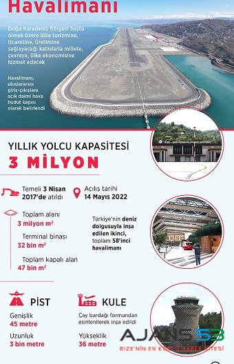 Türkiye'nin deniz dolgusuyla inşa edilen ikinci havalimanı olan Rize-Artvin Havalimanı, Gazi Mustafa Kemal Atatürk, Cumhurbaşkanı Erdoğan, Azerbaycan Cumhurbaşkanı Aliyev'in fotoğrafları ile Türk ve Azerbaycan bayraklarıyla süslendi.