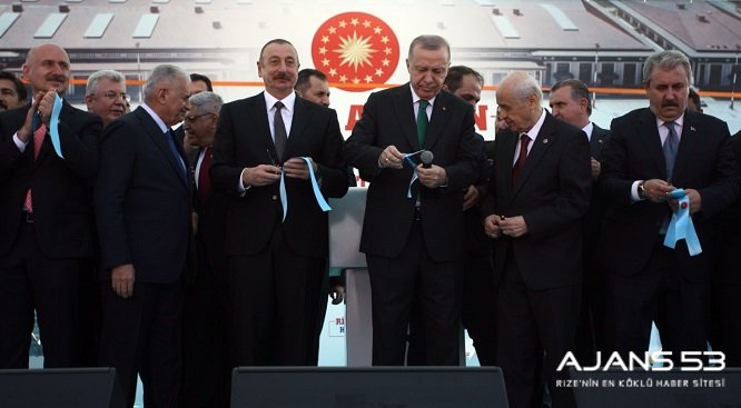 Cumhurbaşkanı Erdoğan, Azerbaycan Cumhurbaşkanı Aliyev, MHP Genel Başkanı Bahçeli, BBP Genel Başkanı Destici ve beraberindekilerle birlikte kurdele keserek açılışı yaptı.