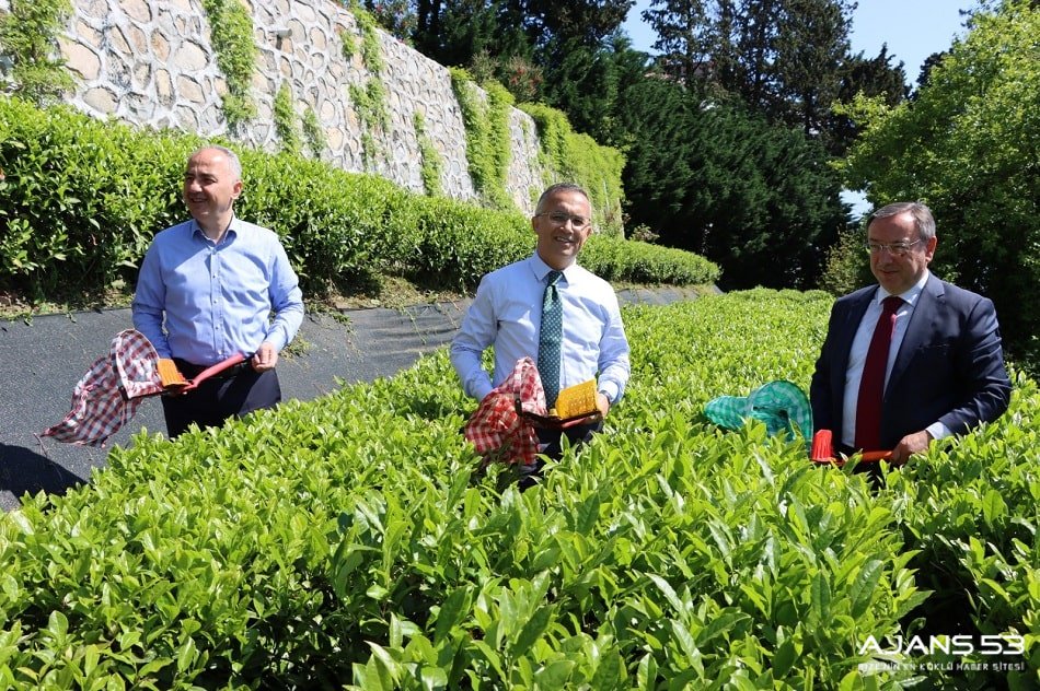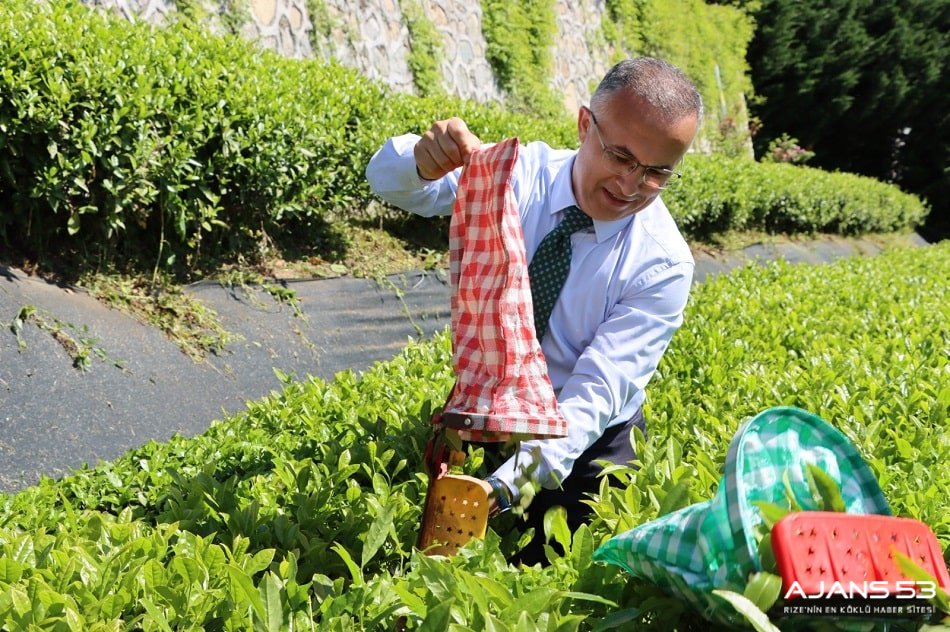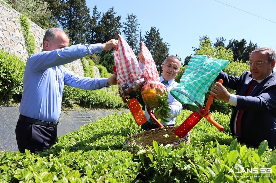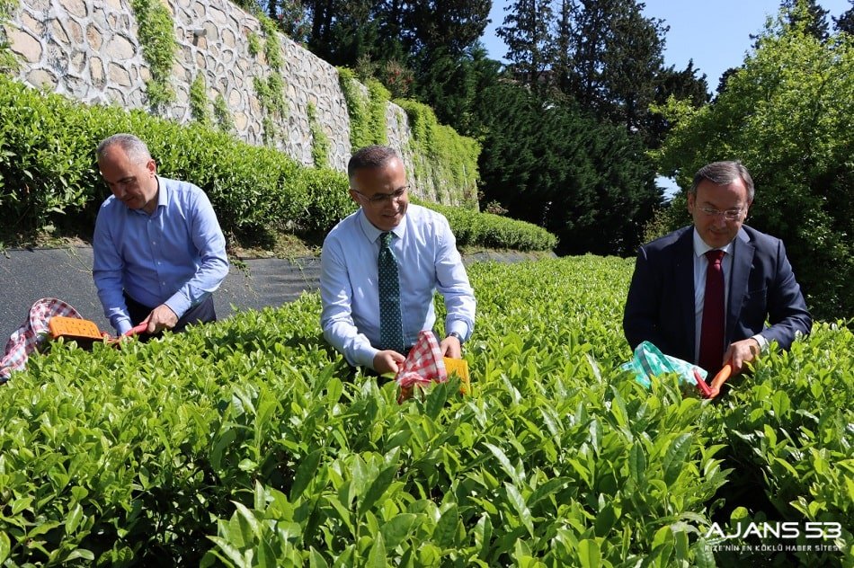Rize Valisi Kemal Çeber, Rize Belediye Başkanı Rahmi Metin ve ÇAYKUR Genel Müdürü Yusuf Ziya Alim ile birlikte ÇAYKUR Ziraat Çay Bahçesi'nde çay sezonu açılışında çay hasadı yaptı.