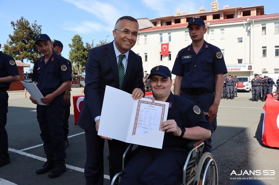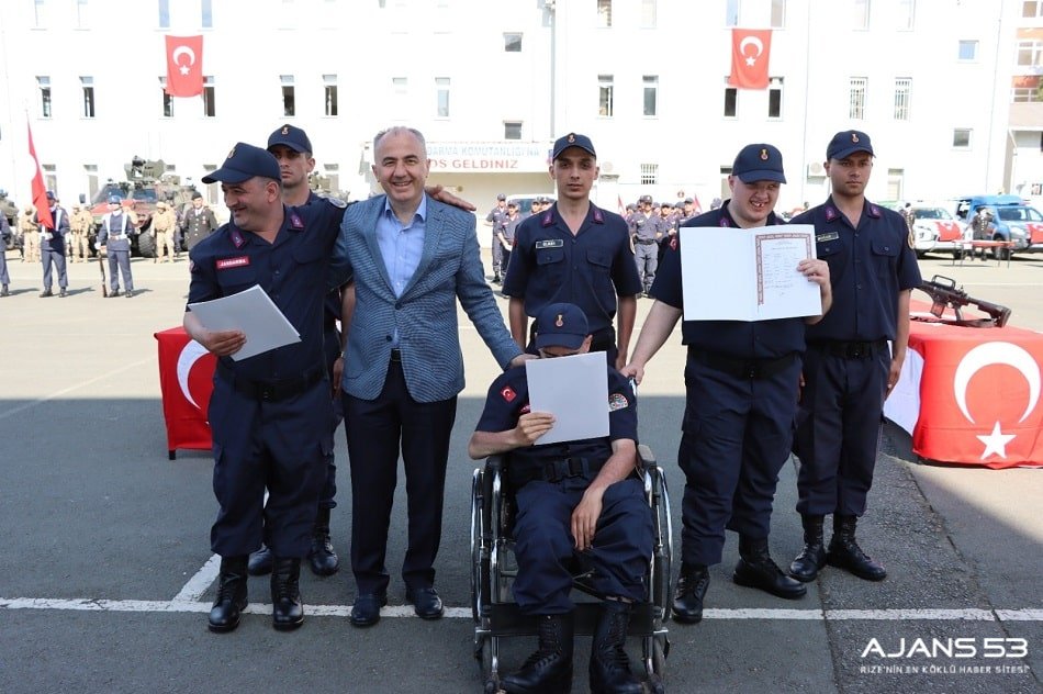 Rize' de 19 engelli "Temsili Askerlik Uygulaması" kapsamında düzenlenen törenle bir günlüğüne asker oldu.
