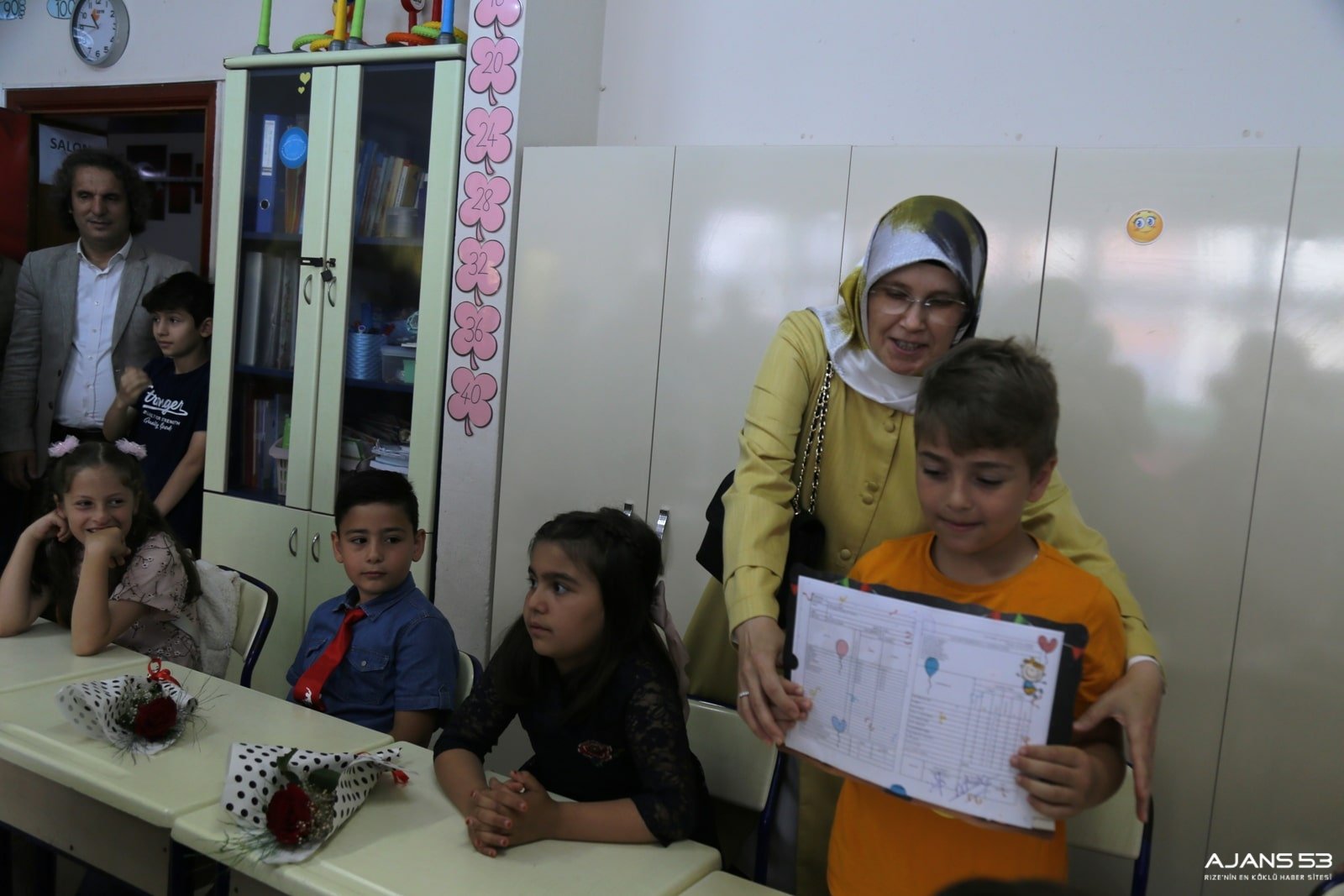 Rize Valisi Kemal Çeber, Rize Belediye Başkanı Rahmi Metin, Rize’de Okul öncesi, ilköğretim ve ortaöğretim okullarındaki yaklaşık  57655 öğrencinin  bugün karne heyecanını, Doğuş çay İlköğretim okul öğrencileri ile yaşadı. Karne Dağıtım Törenine İl Milli Eğitim Müdürü Engin Emen’de katıldı. Vali Çeber  ve Başkan Metin’in eşleri  Neslihan Çeber ve Fatma Metin, İlk karneleri çocuklara takdim etti.