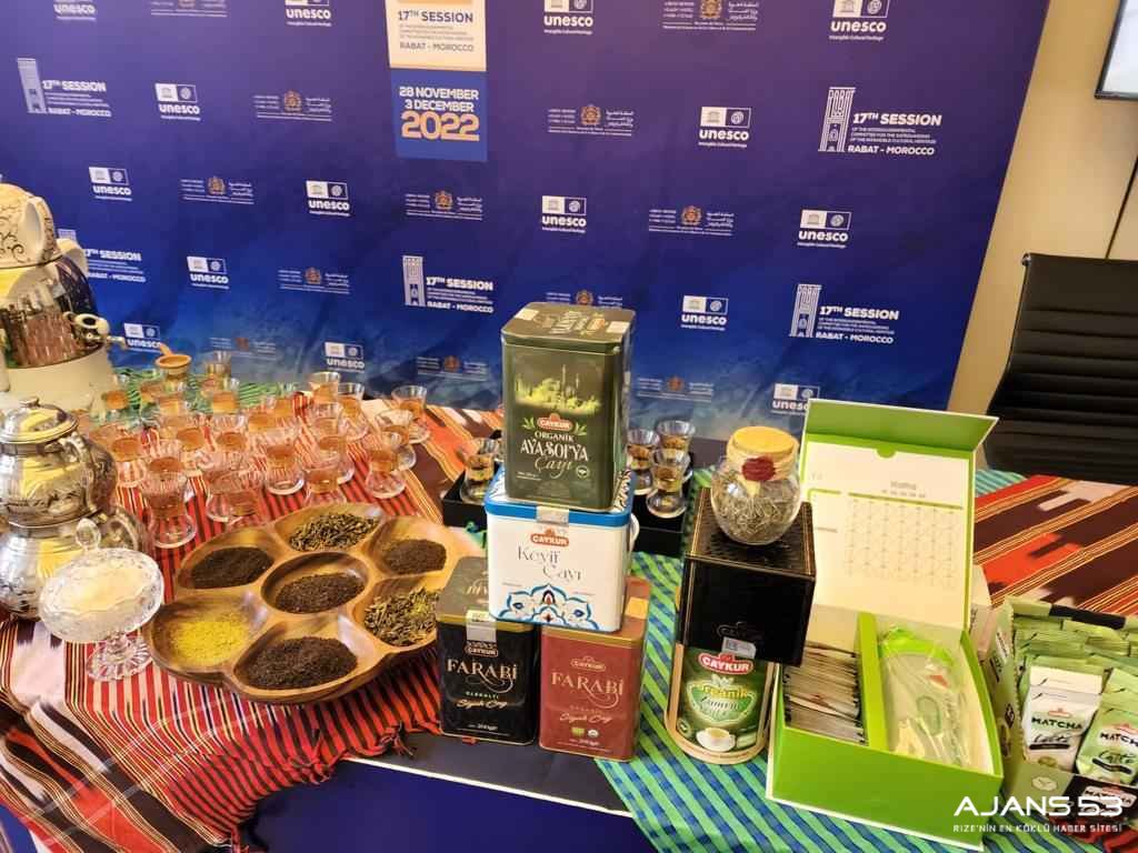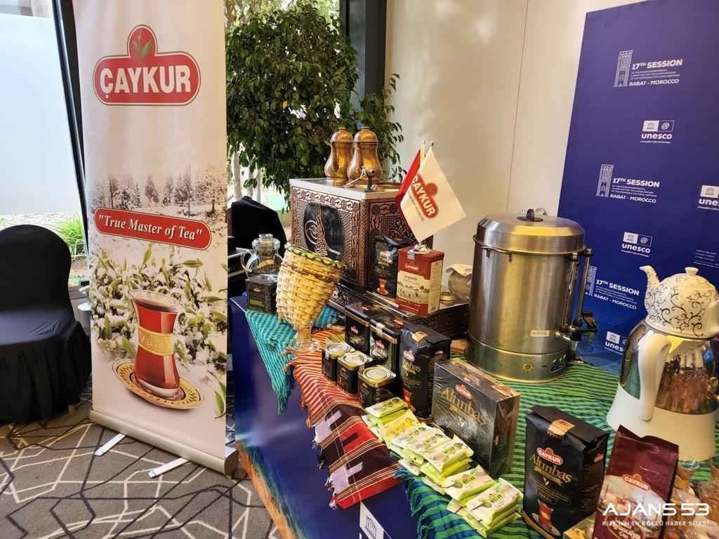 Türk Çay Kültürü UNESCO’nun Fas’ta düzenlenen Somut Olmayan Kültürel Mirasın Korunması Hükümetlerarası 17. Komite Toplantısı’nda gündeme alınarak UNESCO İnsanlığın Somut Olmayan Kültürel Mirası Temsili Listesi’ne eklenirken Türk Çay’ının tanıtımı ve en verimli şekilde değerlendirilmesi ile ilgili her alanda çalışmalarını sürdüren ÇAYKUR, Türkiye’nin Fas Büyükelçiliğinin davetlisi olarak katıldığı etkinlikte açtığı stant ve yaptığı sunumlarla birçok ülkenin elçilerinin, bakanlarının ve UNESCO elçilerinin katıldığı Komite Toplantısının ilgi odağı oldu.