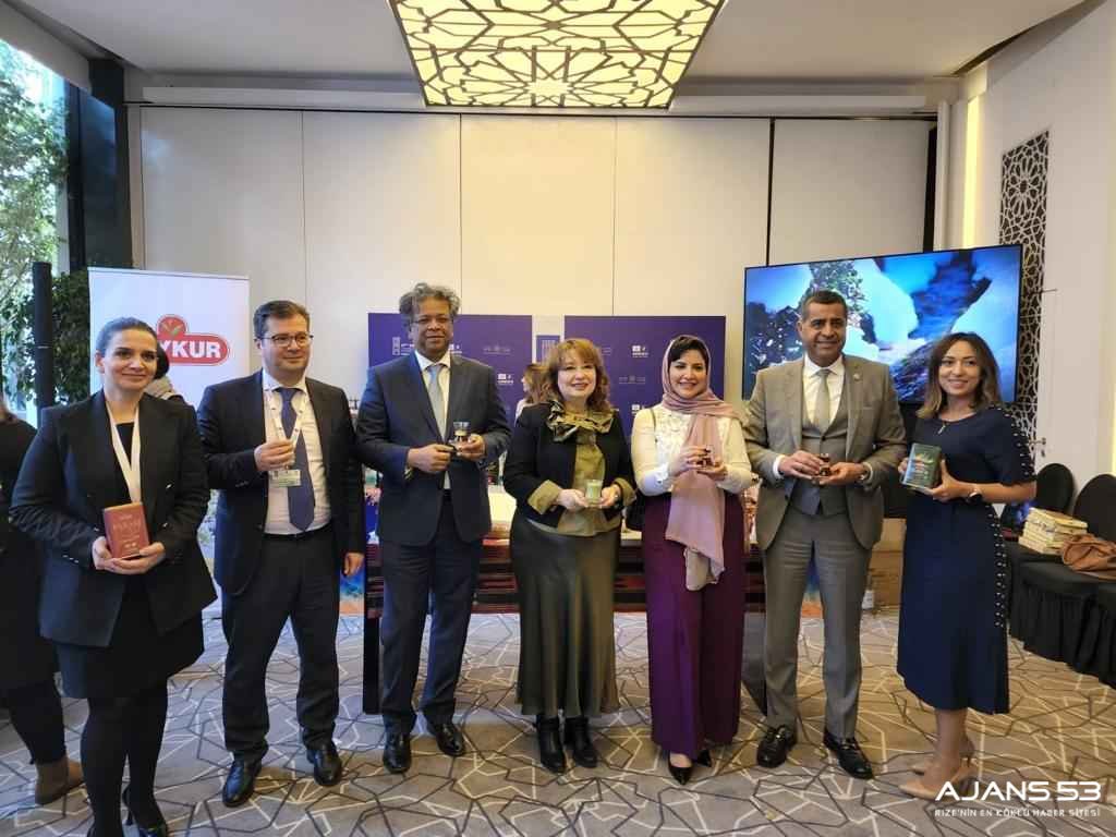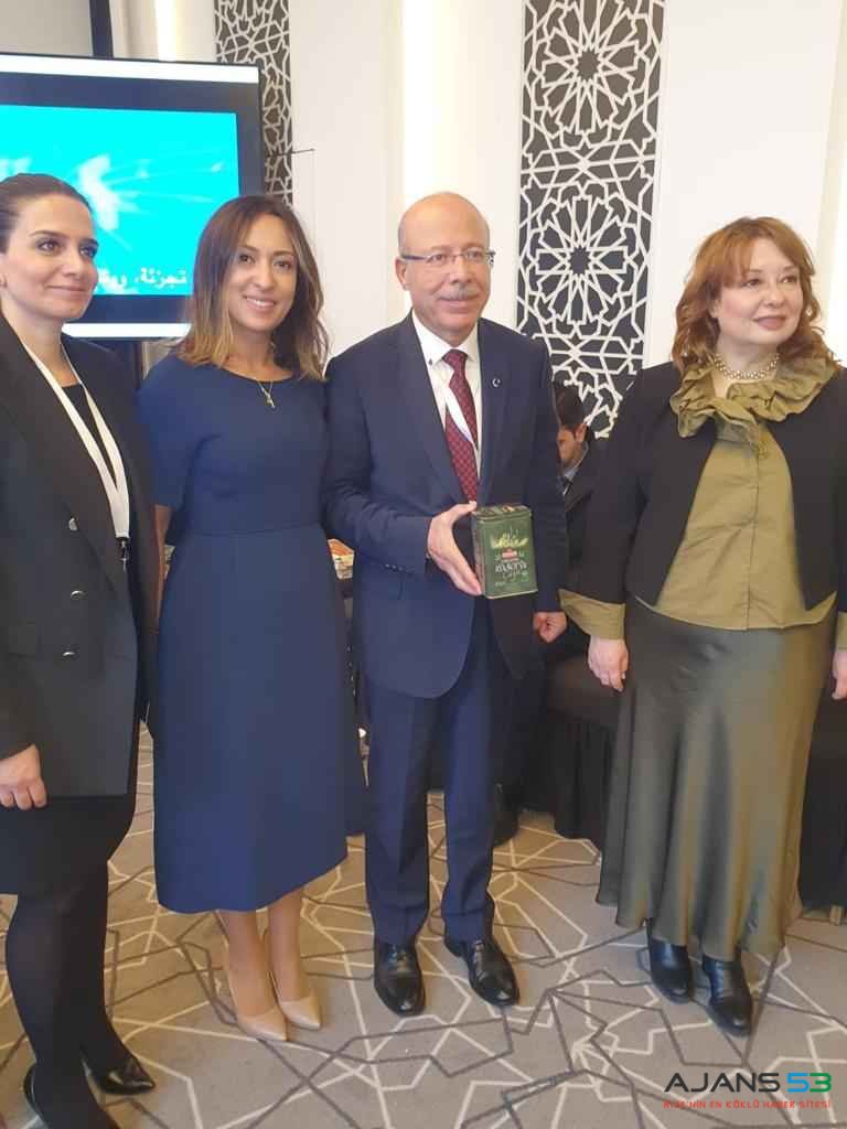 ÇAYKUR standını ziyaret eden Fas Büyükelçisi Ömer Faruk Doğan ve Türkiye’nin UNESCO Daimi Temsilcisi Büyükelçi Prof. Dr. Gülnur Aybet’e ÇAYKUR çaylarından oluşan hediye takdim edildi.
