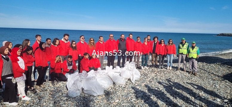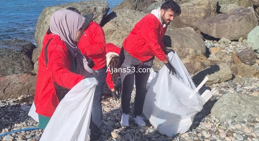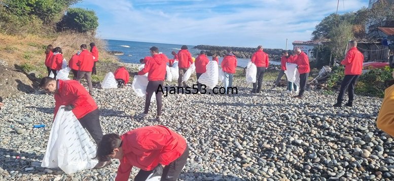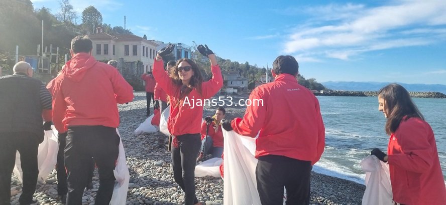 Rize'nin İyidere ilçesinde deniz kıyısında yapılan temizlik çalışmasında 200 kilogram atık toplandı.