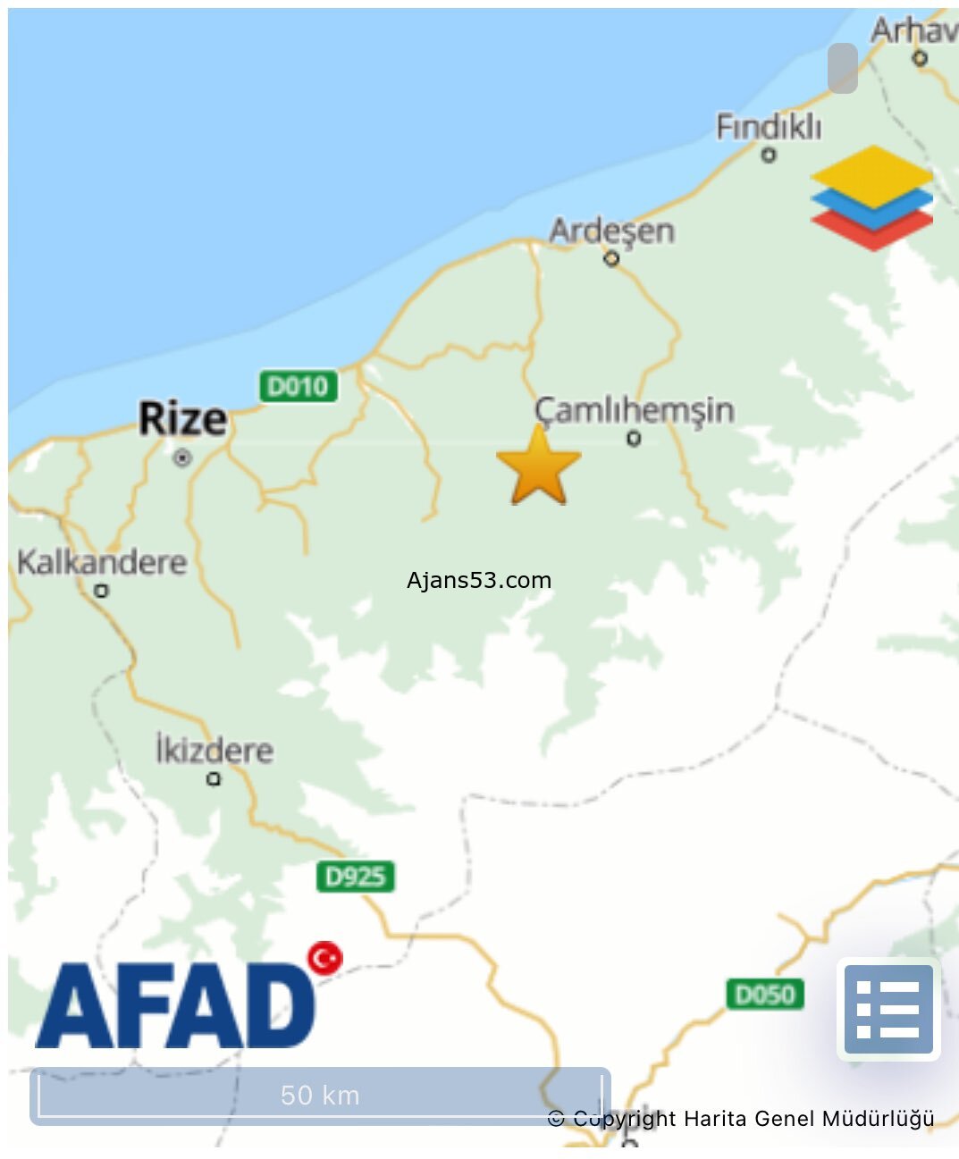 AFAD verilerine göre Rize'de 4,7 büyüklüğünde deprem meydana geldi.