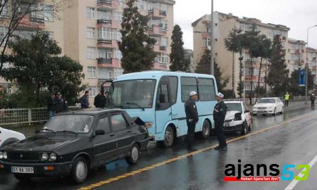 Sabah saatlerinde Terminal kavşağında kırmızı ışıkta bekleyen N.T yönetiminde ki 06 BF 0218 plakalı özel araç, H.T yönetiminde ki 53 M 0387 plakalı şehir içi minibüs ile 61 NA 389 plakalı özel araç orta şeritten Sarp ıstıkametine gitmekte olan Armiran Kutchova yönetiminde ki WN119 B plakalı aracın orta şeritten Menderes bulvarında ki şehir içi toplama şeridine uçması sonucu kırmızı ışıkta bekleyen 06 BF 0218 plakalı araca arkadan çarpması sonucu 4 araç birbirine girdi. Kazada Gürcü sürücü ile iki araç sürücüsü yaralandı. Minibüs şöförü ise kazada yara almadan kurtuldu.