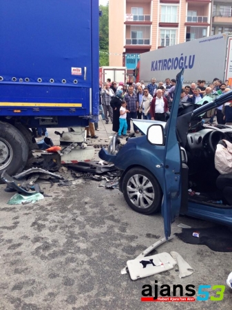 Edinilen bilgilere göre, sürücüsü belirlenemeyen 34 HJ 2382 plakalı otomobil sürücüsünün direksiyon hakimiyetini kaybetmesi sonucu Görele’nin Çavuşlu Beldesi’nde yol kenarında park halinde bulunan TIR'a arkadan çarptı. Uykusuzluk ve dikkatsizlik sonucu meydana geldiği belirlenen kazada Hafize Kılıç (49), Gülizar (52), Meliha (41), Furkan (10) ve Erkan Özçelik (38) ile Muhammet (8) ve Yakup Kılıç (51) yaralandı.