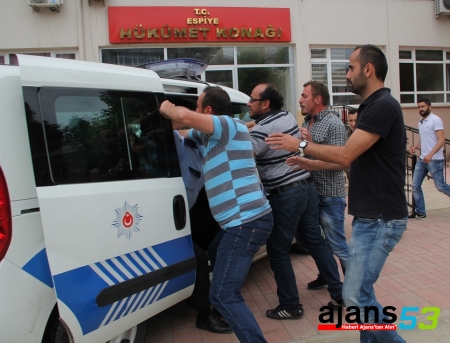 Emniyetteki işlemlerinin ardından öğlen Espiye Adliyesi'ne götürülmek istenen 51 yaşındaki doktor F.C.T'ye hayatını kaybeden Mustafa Şişman'ın yakınları saldırmak istedi. Polis, Şişman'ın yakınlarına biber gazıyla müdahale etti. Kalabalığın dağılmaması üzerine ekipler F.C.T'yi adliye önünden uzaklaştırdı.