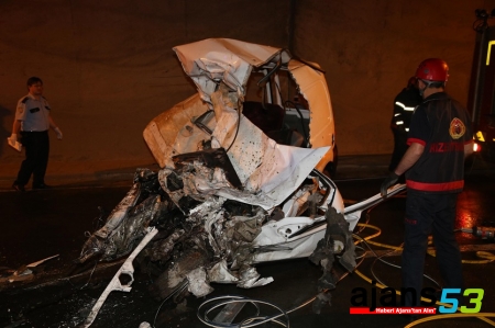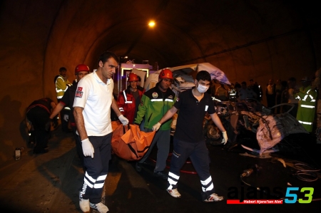 Alınan bilgiye göre, Ömer Kızılay'ın (23) kullandığı 25 LE 997 plakalı kamyonet, Rize-Trabzon karayolu İyidere Tüneli mevkisinde karşı şeride geçerek Erkan Genç idaresindeki Rize-Ankara seferini yapan 53 HP 707 plakalı yolcu otobüsüyle çarpıştı.