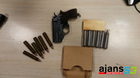 X-Ray cihazında yapılan aramada, G.G'nin üzerinde yurda kaçak olarak sokulmak istenen tahrip gücü yüksek el yapımı tabanca ile 12 mermi ele geçirildi.