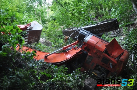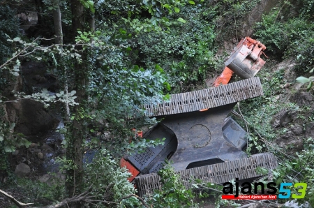 Merkeze bağlı Dere Mahallesi Canoğlu Sokak'ta istinat duvarı yapımında çalışan Erol Tosun'un (24) kullandığı özel firmaya ait iş makinesi, uçuruma yuvarlandı.