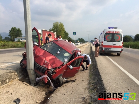 Bursa’nın İnegöl ilçesindte, elektrik direğine çarpan araçta gelinle birlikte 3 kişi yaralandı.