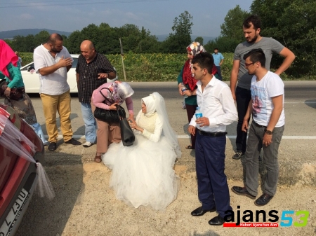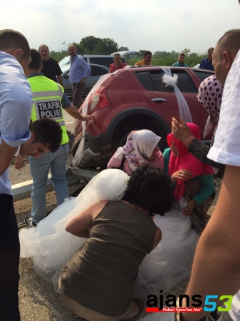 Edinilen bilgiye göre, Eskişehir’de yapılan kınanın ardından Gemlik’te yapılacak düğün için Emre ve Yasemin Kazanoğlu çiftinin düğün alayı yola çıktı. 26 yaşındaki damat Emre Kazanoğlu’nun kullandığı gelin arabası, Oylat mevkiinde yol ortasında bulunan aydınlatma direklerine çarptı. Orta refüjdeki su kanalına düşen araçta, 22 yaşındaki gelin Yasemin Kazanoğlu ile birlikte 33 yaşındaki Reyhan Külahlı ve 34 yaşındaki Ayşe Kazanoğlu hafif yaralandı. Konvoyda bulunan akrabalarının yardımıyla araçtan çıkan yaralılara ilk müdahaleyi haber verilmesi üzerine olay yerine gelen 112 ekibi yaptı. Hastaneye kaldırılan gelin ve diğer yaralılar burada yapılan müdahalenin ardından taburcu edildi.
