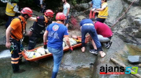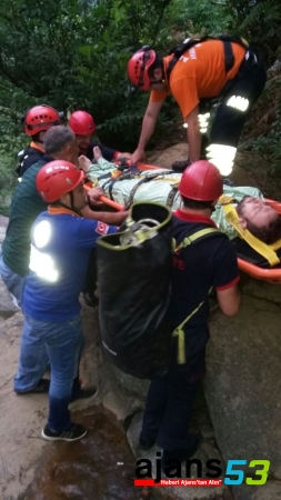 Rize'de serinlemek için girdiği şelaleden kayalıklara düşerek ağır yaralanan kişi, ekiplerin yaklaşık iki saatlik çalışmasıyla kurtarıldı.