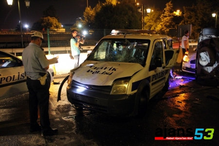 - Samsun'da kaza yapan bir otomobilin çevresinde güvenlik önlemi alan polis ekiplerine minibüs çarptı