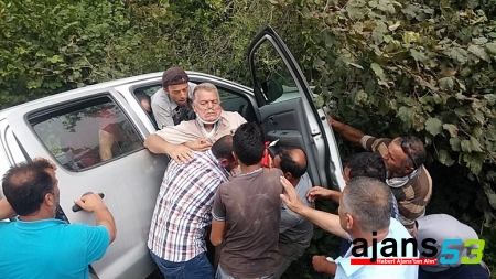 Otomobilde sıkışan Gün, çevredeki vatandaşların ve Trabzon Büyükşehir Belediyesi İtfaiye ekiplerinin müdahalesiyle bulunduğu yerden çıkartıldı.