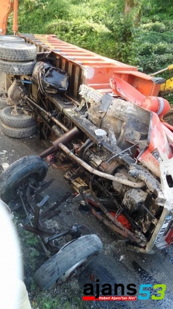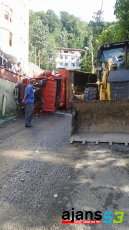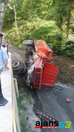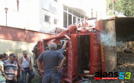 Rize'de toprak yüklü kamyonun devrilmesi sonucu bir kişi yaralandı.