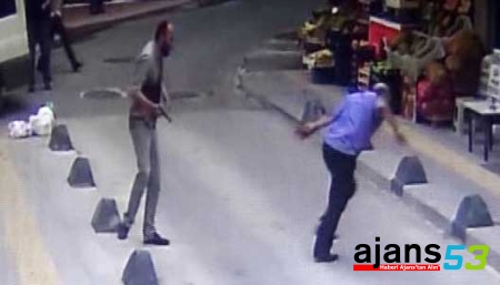 Rize'de iki kişi arasında çıkan silahlı kavga anlarını güvenlik kamerası kaydetti.