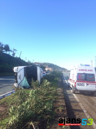 Rize'nin Ardeşen İlçesi Işıklı köyünde bu sabah meydana gelen trafik kazasında, Batum istikametinden Rize'ye giden Midibüs sürücüsünün dikkatsizliği kazaya neden oldu.