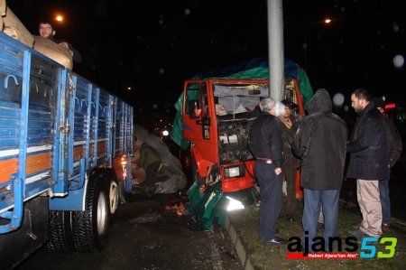 Artvin yönüne giden Mustafa Fettahoğlu (48) yönetimindeki 53 K 6174 plakalı çay yüklü kamyon, Karadeniz Sahil Yolu'nun Rize Ticaret Borsası yol ayrımında, kontrolden çıkarak yol kenarındaki aydınlatma direğine vurdu.