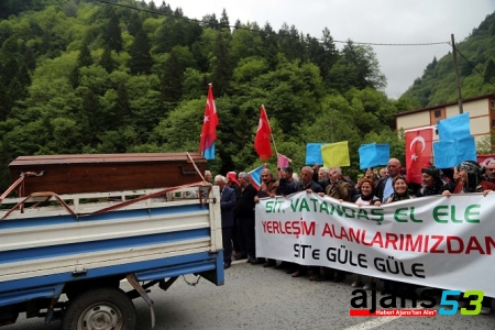 Ardeşen Fırtına Vadisi köprüsünün girişinde toplanan yaklaşık 150 kişilik grup, "Vatandaş el ele, yerleşim alanlarımızdan site güle güle" yazılı pankart ve "Çevre bekçi ile değil sevgi ile korunur", "Sit, köyümden git" yazılı dövizler açtı.