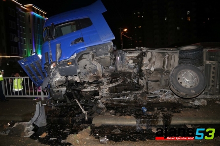 Edinilen bilgiye göre, Trabzon istikametinden Artvin istikametine giden Adem Uzun yönetimindeki 61 K 0776 plakalı tır, Karadeniz Sahil Yolu İslampaşa Mahallesi mevkisinde, sürücünün direksiyon hakimiyetini kaybetmesi sonucu kontrolden çıktı. Refüjü aşarak karşı şeride geçen tır devrildi.